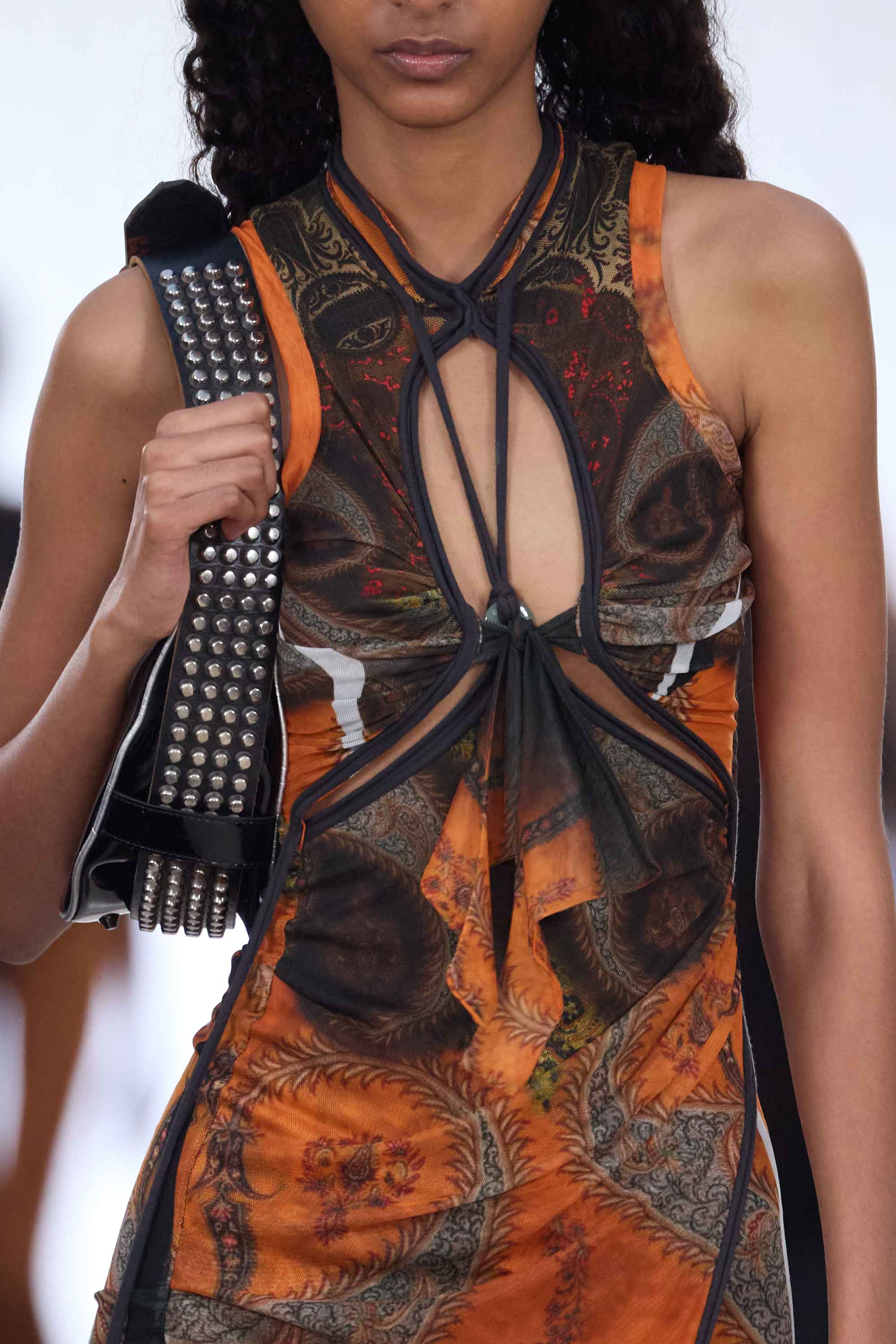 La potencia de la colección reside en la subversión de los códigos preestablecidos. El gesto más contundente de esta relectura es el vestido de novia. OTTOLINGER lo despoja de su carga patriarcal para liberarlo, transformándolo en símbolo de autonomía y conexión mutua, más allá de cualquier promesa de posesión. La colisión de materiales, paisley sobre gingham teñido, sedas artesanales y la rudeza técnica del neopreno, subraya esa tensión entre lo frágil y lo inquebrantable, el mismo equilibrio que sostiene cualquier vínculo real.