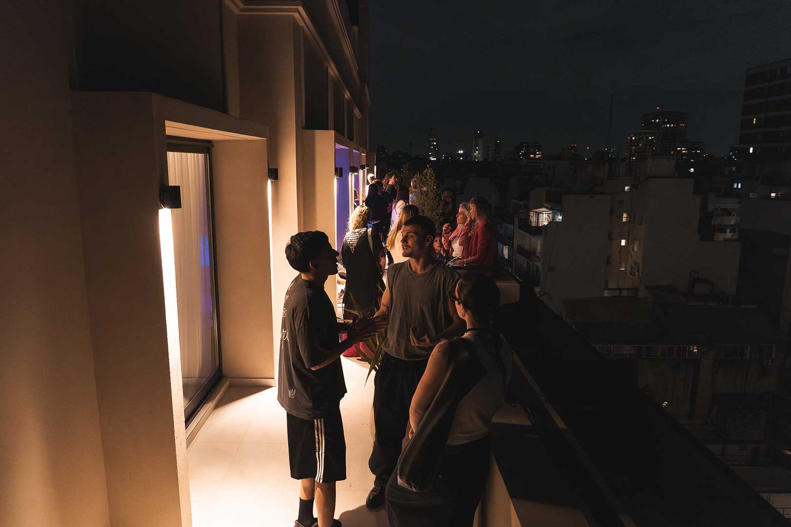Con una estética minimalista y bajo luz tenue y cálida, el hotel VILON se convirtió en uno de los puntos más interesantes del circuito de Distrito Arenales durante La Noche del Diseño. Desde su filosofía de bienestar urbano, integró arte, diseño, música y hospitalidad en un solo espacio.