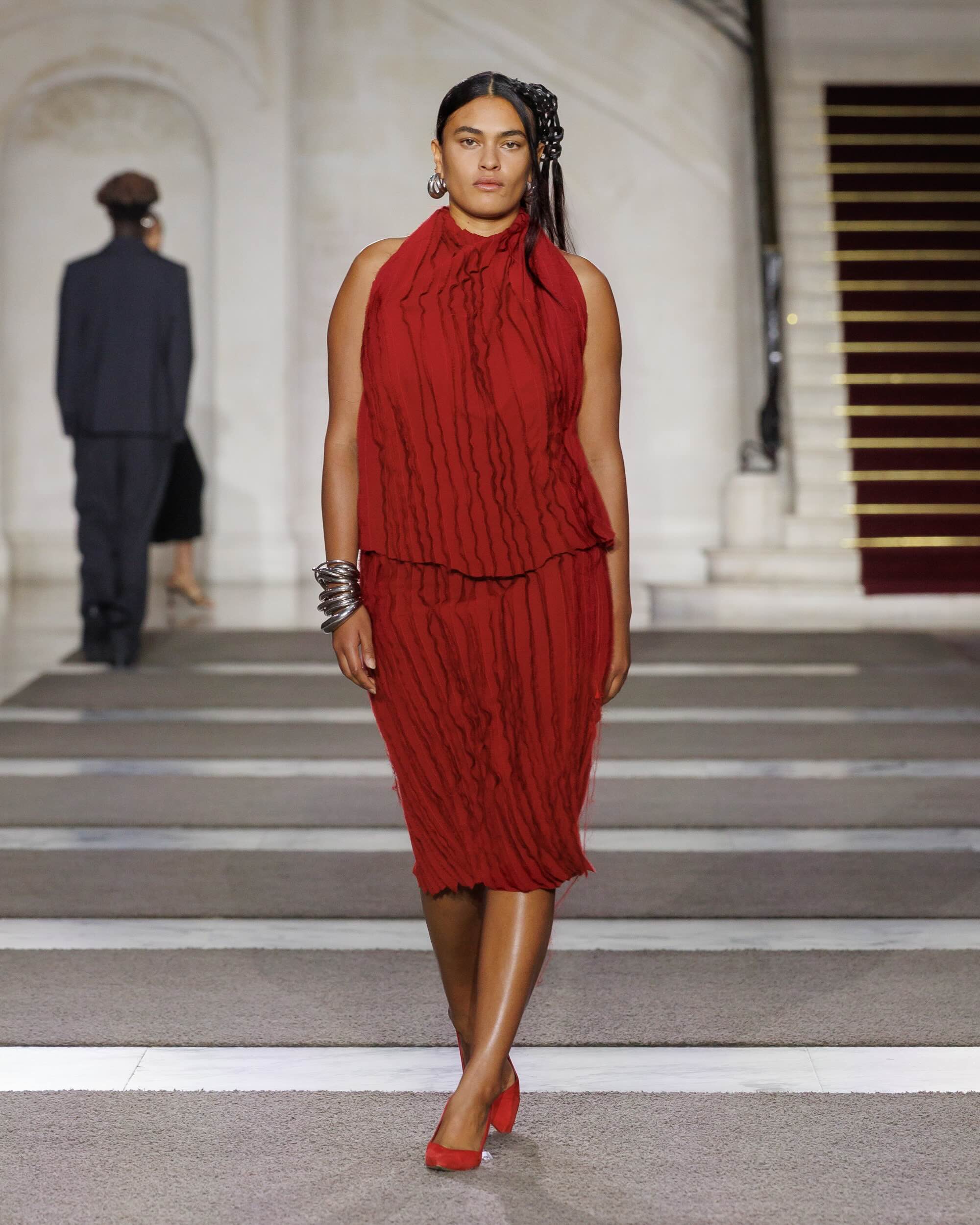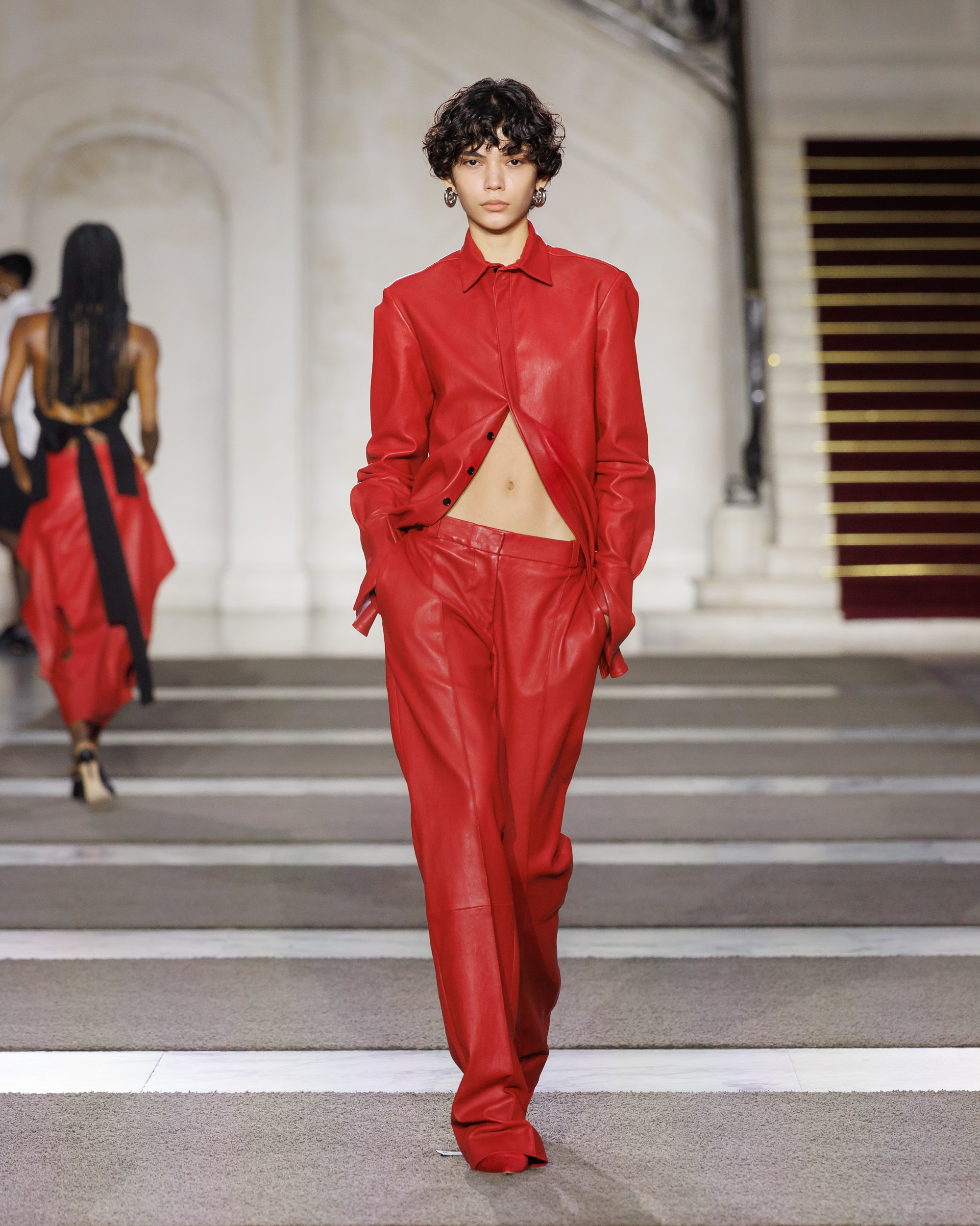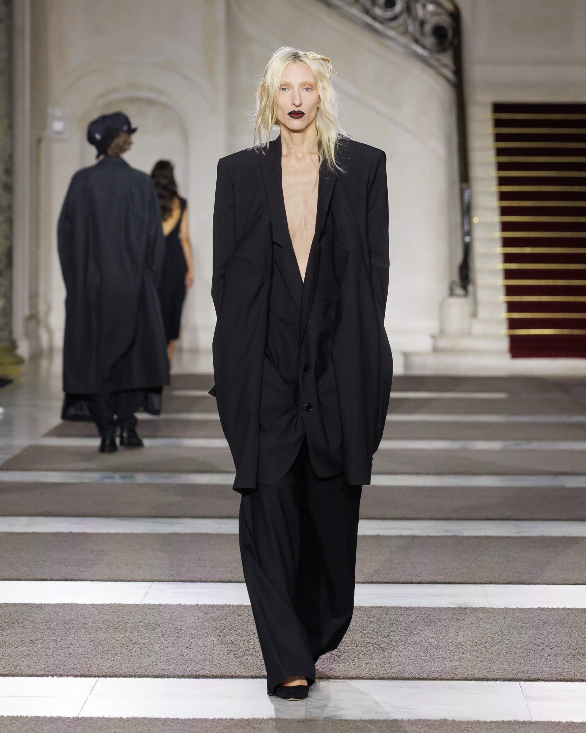 Los materiales también juegan con la dualidad: orgánicos frente a sintéticos, suaves pero inquietantes al tacto. El resultado son prendas que se sienten vivas, casi como organismos que mutan bajo la presión cultural y la desintegración personal.